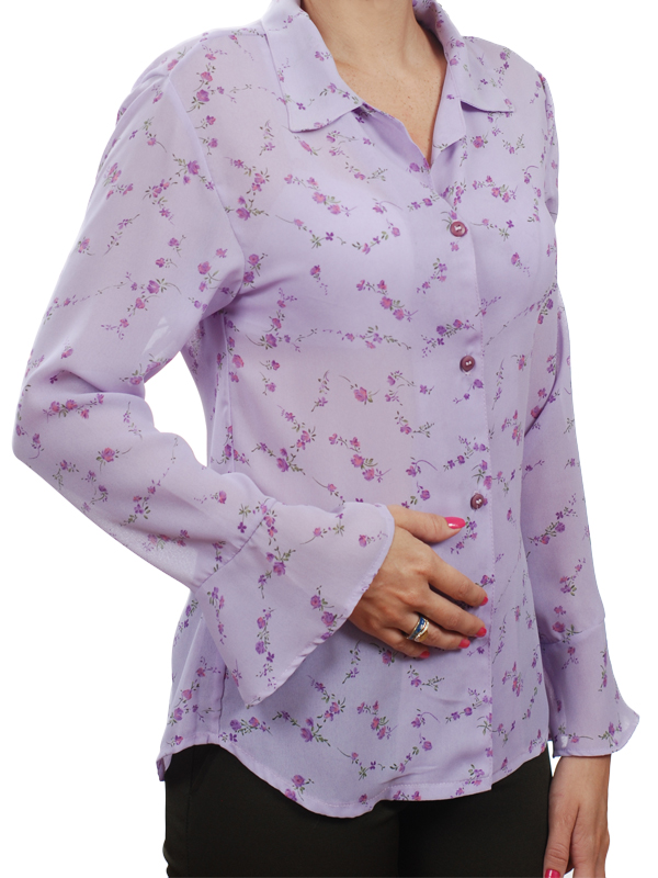 O floral é sempre uma estampa que nos remete ao vintage e ao clássico, ao mesmo tempo. Esta camisa em um tom suave de lilás, com tecido crepe de seda, dá a leveza ideal que você quer transmitir para uma ocasião social ou até mesmo um casual para o dia a dia. Esta peça cai e molda-se perfeitamente ao corpo, justamente porque o crepe tem essa capacidade.