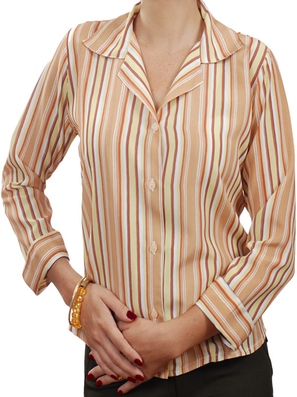 Camisa social feminina de crepe de seda listrada bege