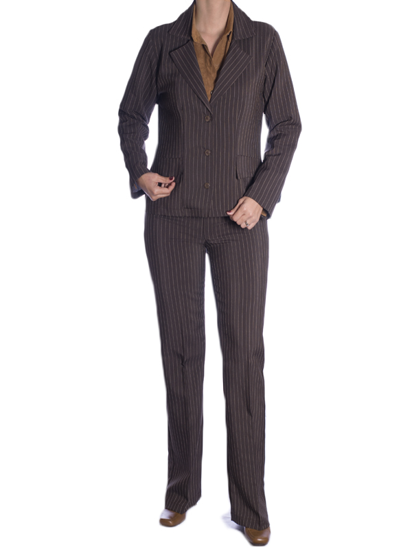 Terninho feminino alfaiataria risca de giz marrom